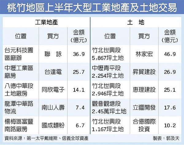 桃竹工業地產 上半年交易136億